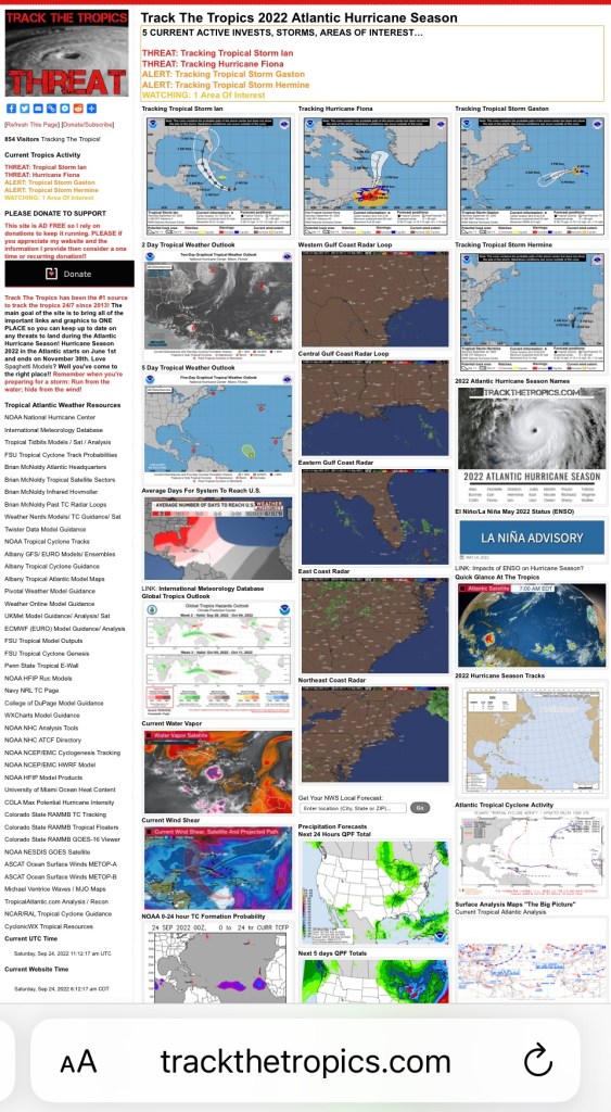 It’s that time of year. Hurricane season. Many people rely on the local news to give them information on the track the hurricane is taking. And that’s fine. Unfortunately the local news tends to scare many of the people watching because their business model is to keep you tuned to their station. So you get lots of reports of stores running out of food, water and gas which tends to create panic. If you want just good reliable tracking info on the storm without all the drama, I highly recommend http://trackthetropics.com